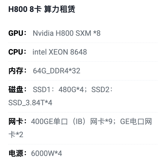 H800算力租用/上海高电机房
